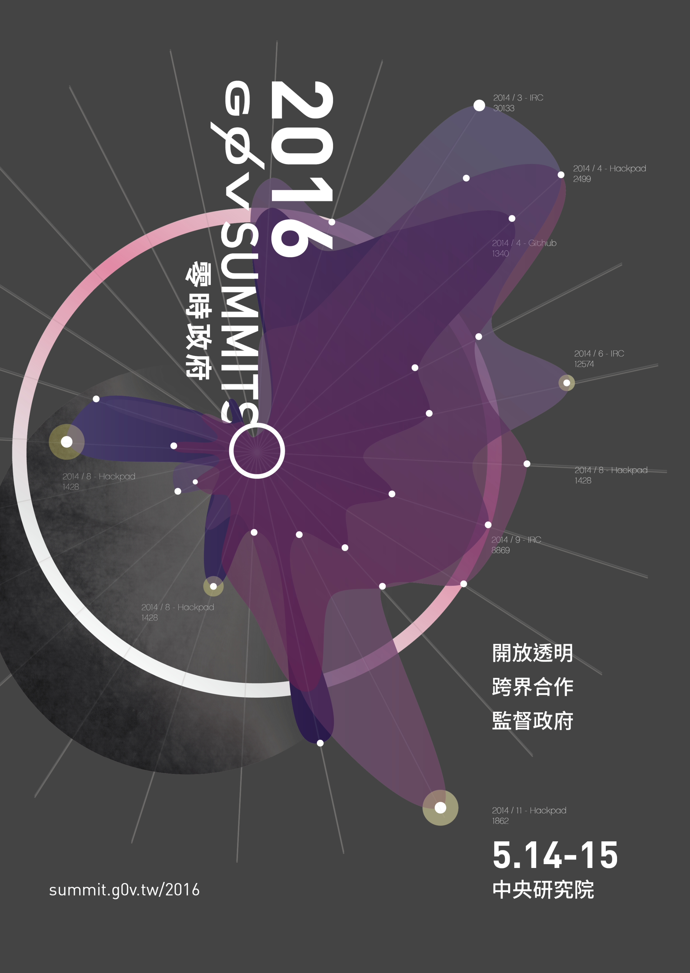 在構思2016summit的時候希望能呈現g0v一年來的活動軌跡,故想將一些資料製作成視覺圖作為主視覺輔助使用
