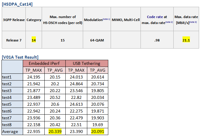In our test result, the average data rate is almost approached to the theory value no matter what the test method is performed. (Embedded/USB Tethering)