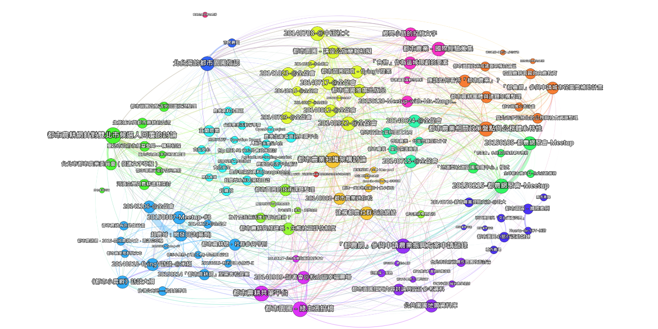 - 大小:越熱門的坑節點看起來會越大 (連結量+議題相似度)