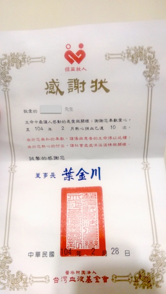 - 永恒之塔.捐血 250cc 達連續4次以上
